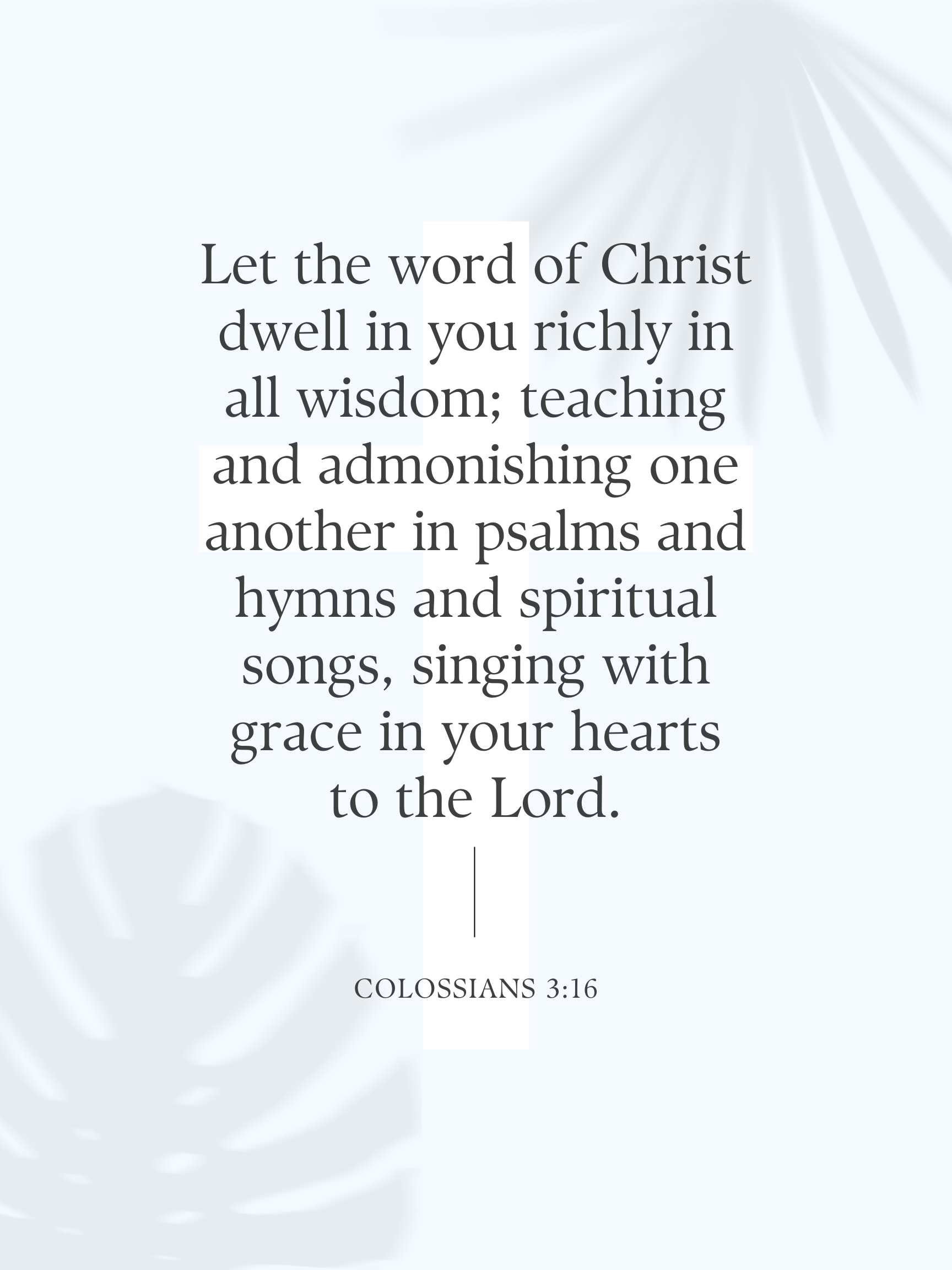 Our prayer is that God’s Word in these songs and hymns would be life-changing for you. One of our primary missions is to encourage a return to Scripture-saturated songs and hymns in churches across the world. We hope you’re inspired to dive deeper into the Bible for yourself and with your family and that you are always refreshed in the good news of God's undeserved kindness to us in Jesus Christ.